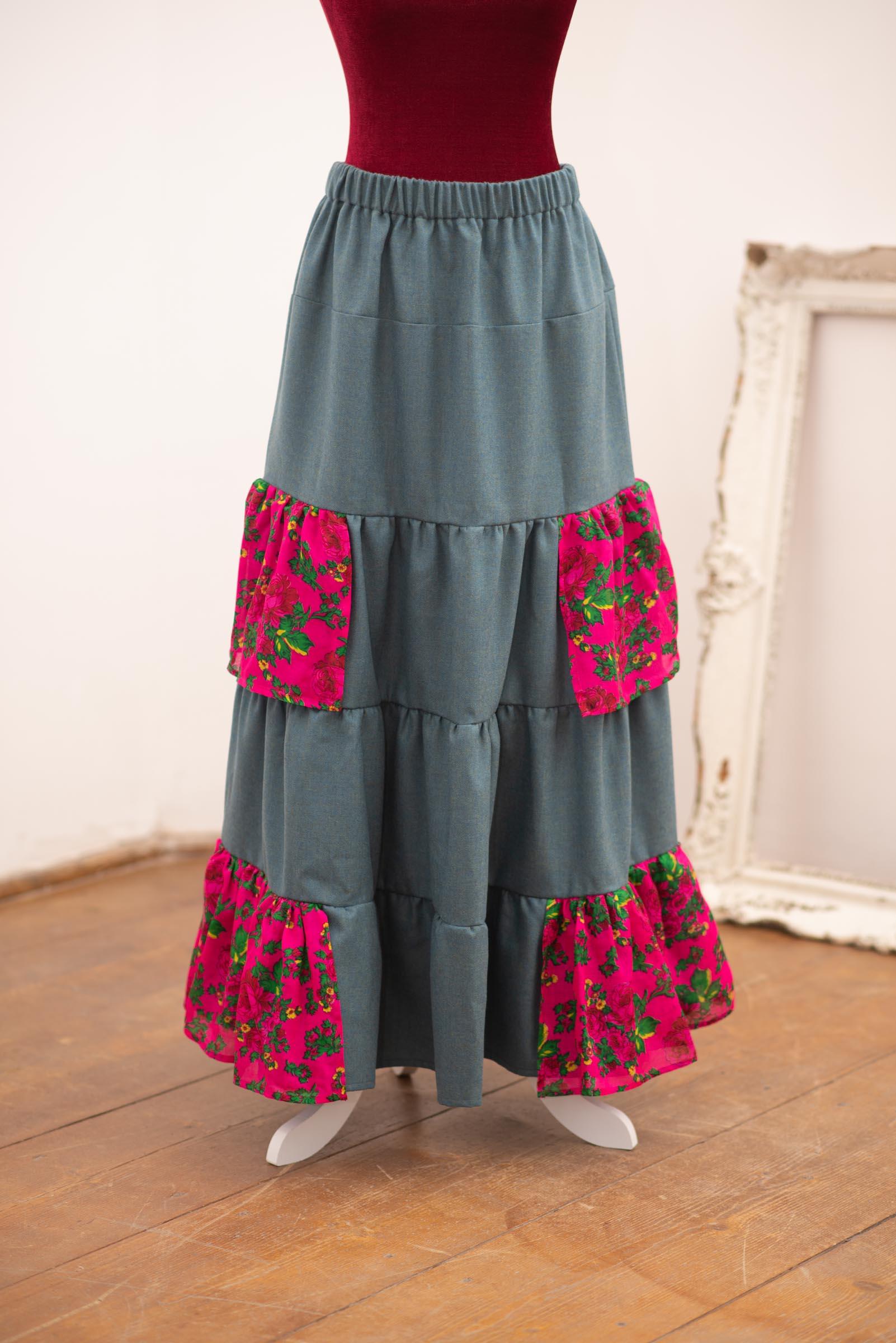 Itt van példának Klára is: egy nagyon szép, fel nem használt, türkizes zöldesszürke gyapjúszövetből készült téli maxiszoknya. Gyapjú! És gyönyörű!!! Szerintem ezt az anyagot kidobni vétek!!!